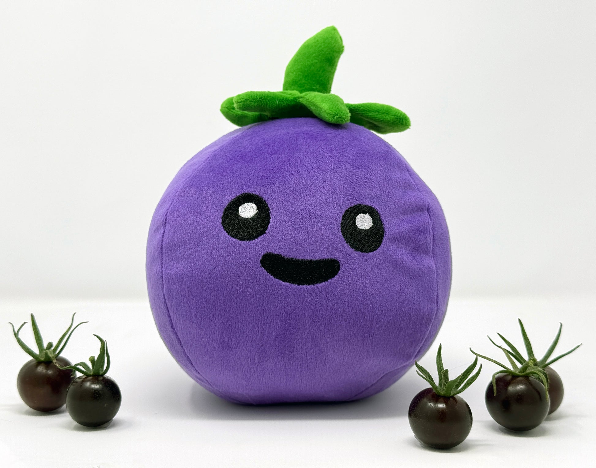 Introducing Ms. Periwinkle Delectable-Damson: The Purple Tomato™ Plushie you never knew you needed. At 8" tall (including calyx) she's the right size to travel with you around town or across the globe. She equally enjoys staying home for movie and wine night or supervising work in the garden.